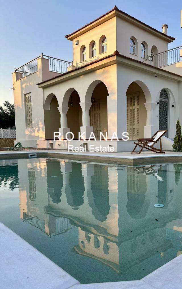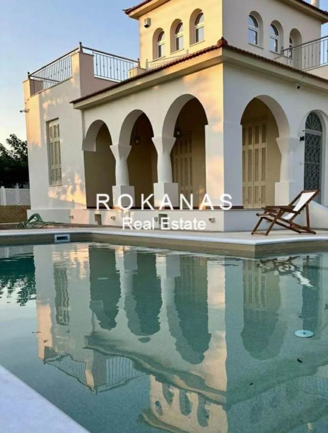 For Sale Detached house, Elliniko, Kato Elliniko, 240 sq.m., In plot 625 sq.m., 3 Levels, Ground floor Floor, 3 Bedrooms, 3 Bathrooms, 1 WC, 1 Fireplace, Floors: Wooden floors + Marble, Frames: Wooden, 1 parking, Building Year: 1960, Certificate Energy: A+, Feautures: Security door, Security alarm, CCTV, Storage room, Fireplace, Playroom, Internal Staircase, Double Glazed Windows, Window Screens, Balconies, Pets Allowed, Stonehouse, Preserved, Luxury, Mansion, Airy, Roadside, Bright, On Corner, AirConditioning, Solar water system, Swimming pool, Back yard (Garden), Painted, Renovated, Autonomous - Fan Coil Heating, Price: 3.750.000€ Rokanas Real Estate, For more properties and photos, please visit www.rokanas.eu, Contact Phone: 2109614336
